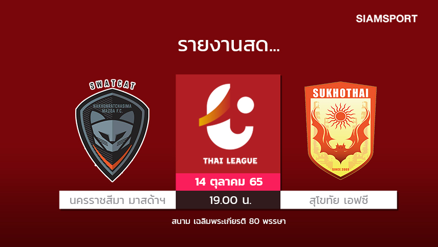 คู่แข่งขัน : นครราชสีมา มาสด้า เอฟซี พบ สุโขทัย เอฟซี